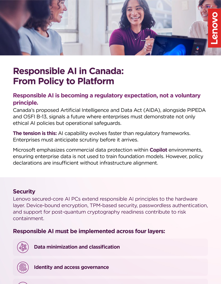 Across Canadian enterprises, boards are pushing for accelerated AI adoption while regulators tighten expectations. Under PIPEDA, organizations must demonstrate responsible data stewardship, and OSFI B-13 requires federally regulated financial institutions to manage technology and cyber risk with measurable resilience.