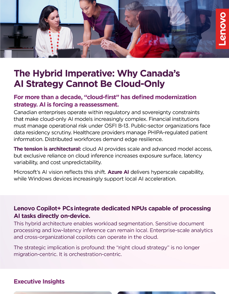 Canadian enterprises operate within regulatory and sovereignty constraints that make cloud-only AI models increasingly complex. Financial institutions must manage operational risk under OSFI B-13. Public-sector organizations face data residency scrutiny.